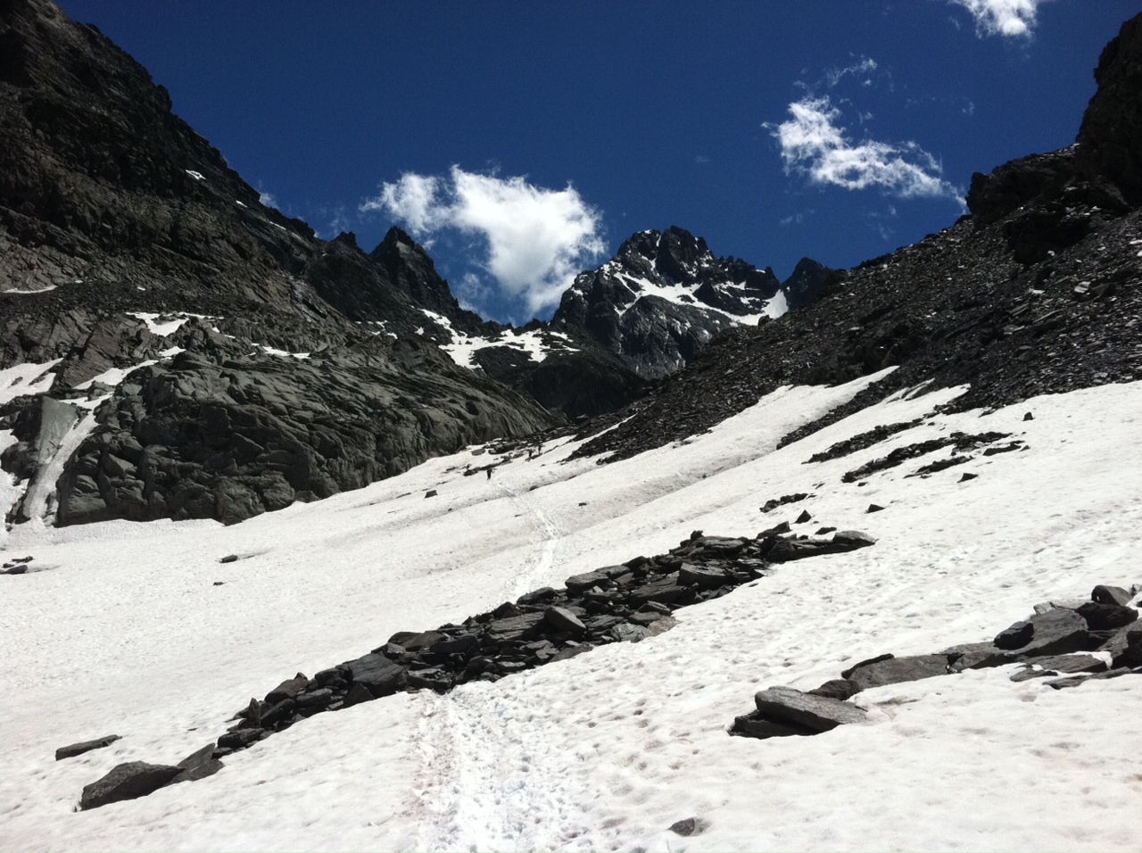 7/9/12 - 3 hours, a few boulder fields and snow fields and we reach the pass 10,000'.... Hendrik said it was going to be an easy/short day.... No more easy days please!